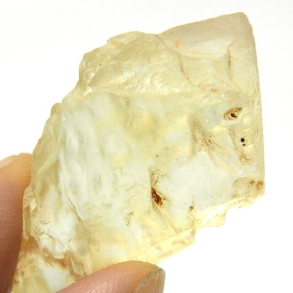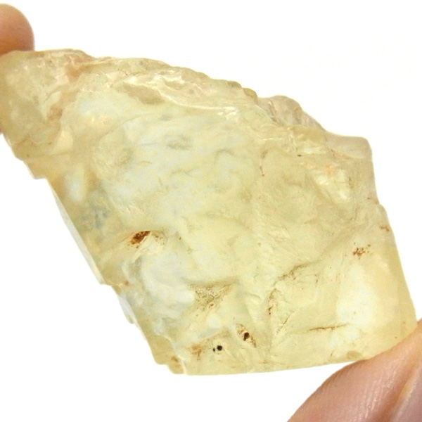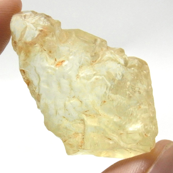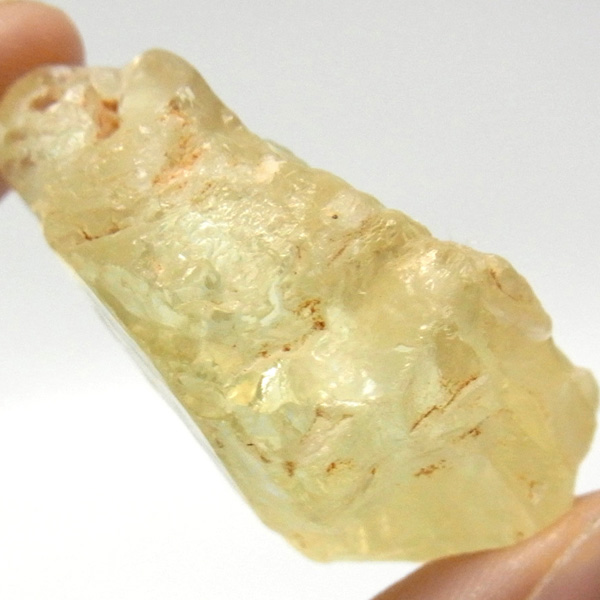 リビアングラスの原石です。リビアングラスはエジプト西部で採れる天然ガラスです。どのように生成されたかはっきりした事は解明されていませんが、モルダバイトのように宇宙を起源とし、隕石の衝突などで起こった巨大な熱反応によって地表の岩盤の一部を溶かして、偶然出来上がったものだと言う見方が一般的です。イエローのカラーがきれいでツタンカーメンのお墓から出土したスカラベが、リビアングラスであったことが分かり話題を呼びました。