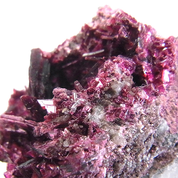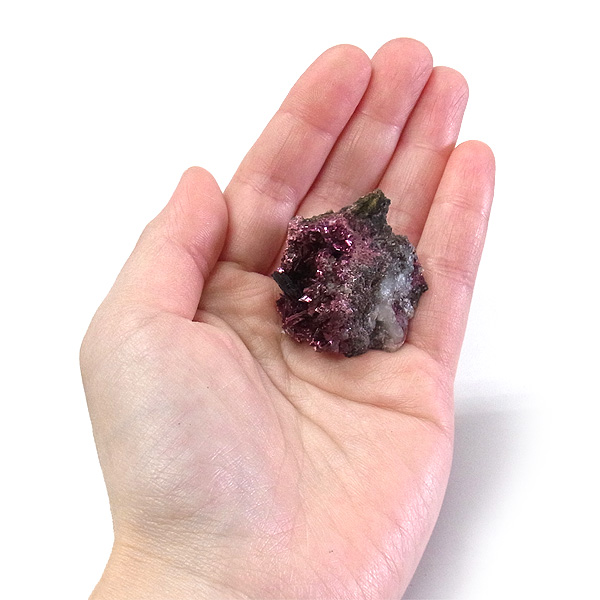 エリスライトは、コバルト鉱と言う鉱物が風化する事によって組成的に分解され、深紅やピンクの結晶が表面を覆ってできる二次鉱物です。