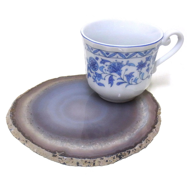 染色をしていな天然のメノウの色になります。 置物を置いたり、鉱物を置いたりのインテリアとしてや、グラスなどを置くコースターとしてもお楽しみ頂けます。