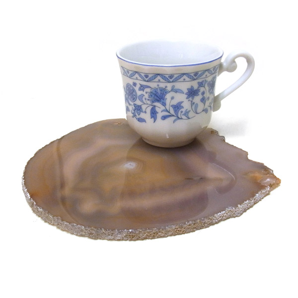 染色をしていな天然のメノウの色になります。 置物を置いたり、鉱物を置いたりのインテリアとしてや、グラスなどを置くコースターとしてもお楽しみ頂けます。