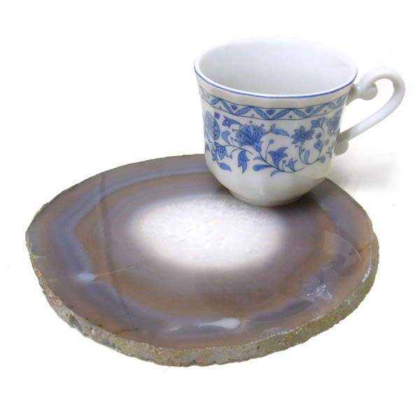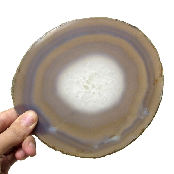 染色をしていな天然のメノウの色になります。 置物を置いたり、鉱物を置いたりのインテリアとしてや、グラスなどを置くコースターとしてもお楽しみ頂けます。