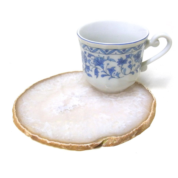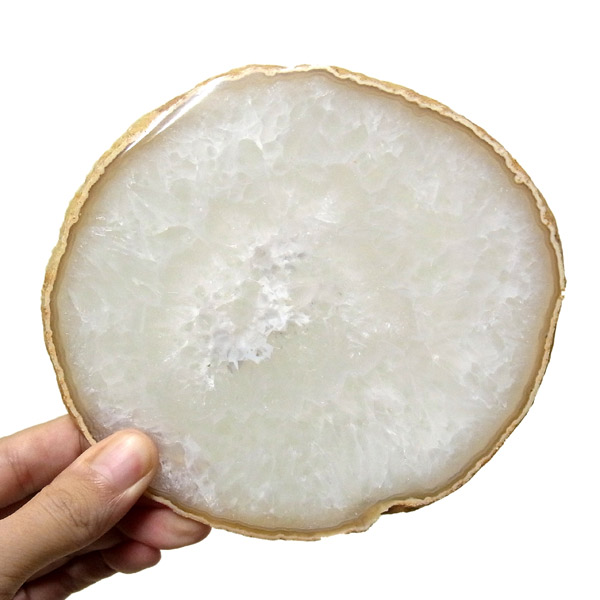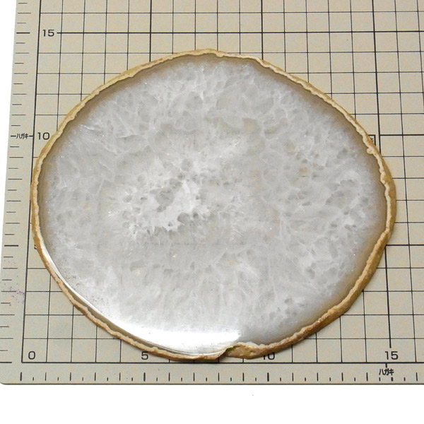 染色をしていな天然のメノウの色になります。 置物を置いたり、鉱物を置いたりのインテリアとしてや、グラスなどを置くコースターとしてもお楽しみ頂けます。