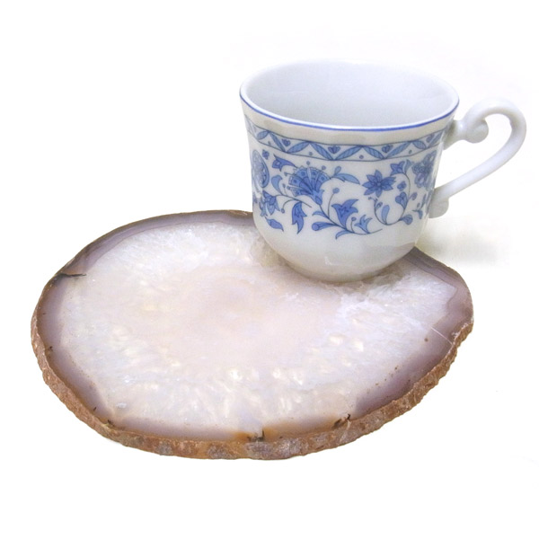染色をしていな天然のメノウの色になります。 置物を置いたり、鉱物を置いたりのインテリアとしてや、グラスなどを置くコースターとしてもお楽しみ頂けます。