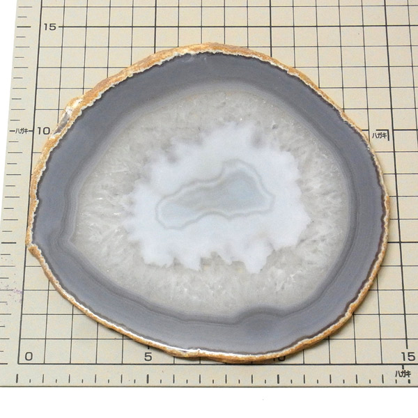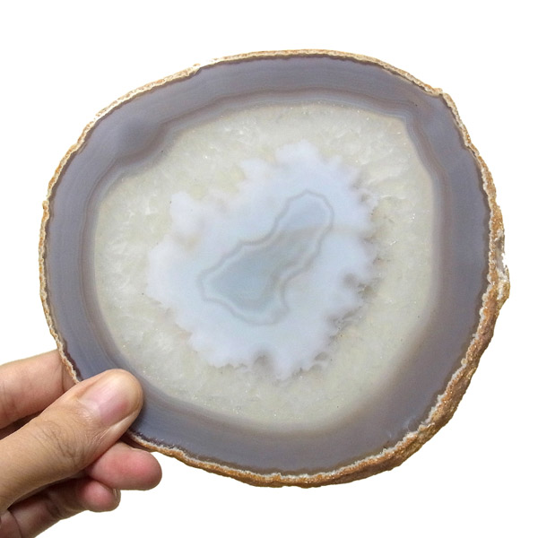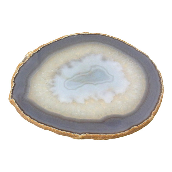 染色をしていな天然のメノウの色になります。 置物を置いたり、鉱物を置いたりのインテリアとしてや、グラスなどを置くコースターとしてもお楽しみ頂けます。
