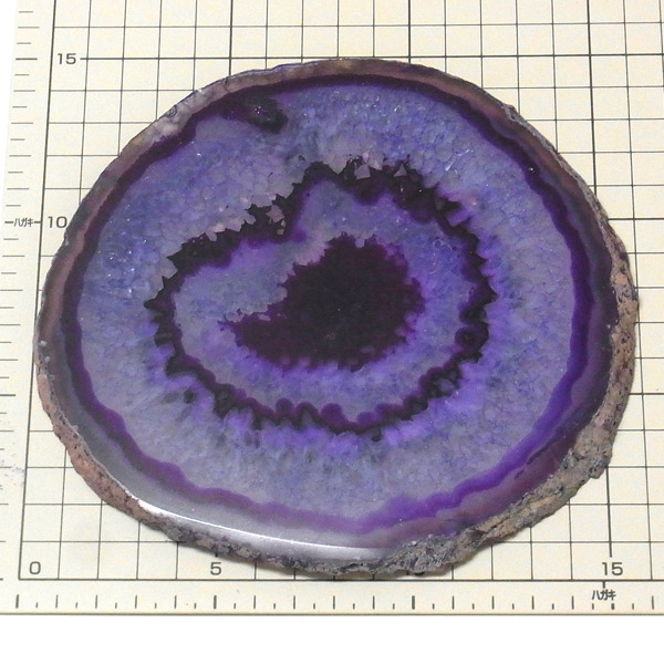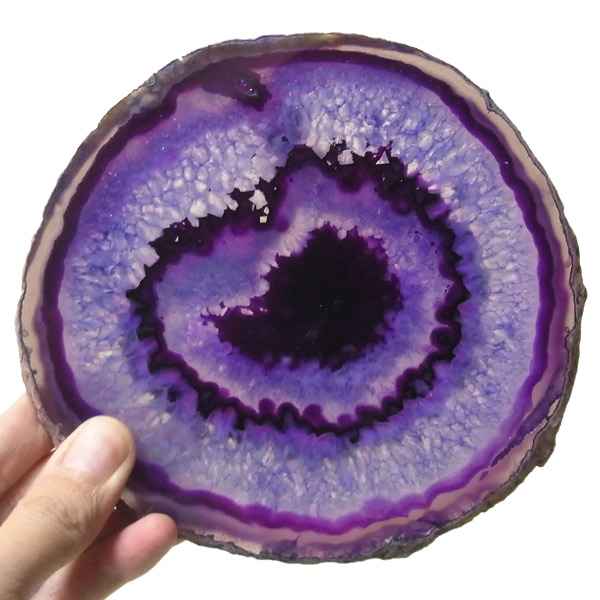 ブラジル産メノウを染色し、薄くスライスした色鮮やかなメノウスライスです。カラーはパープル、大きさは特大サイズです。