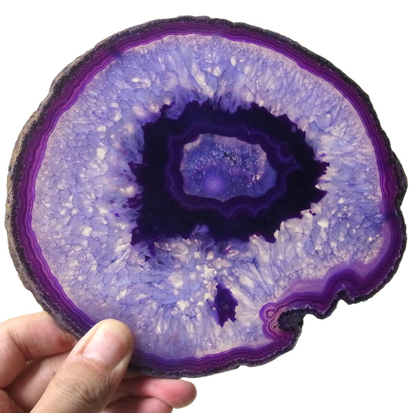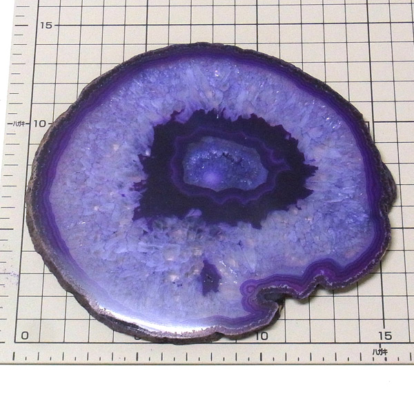 ブラジル産メノウを染色し、薄くスライスした色鮮やかなメノウスライスです。カラーはパープル、大きさは特大サイズです。