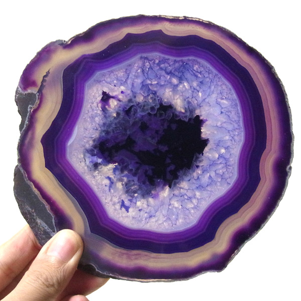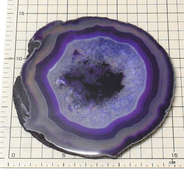 ブラジル産メノウを染色し、薄くスライスした色鮮やかなメノウスライスです。カラーはパープル、大きさは特大サイズです。