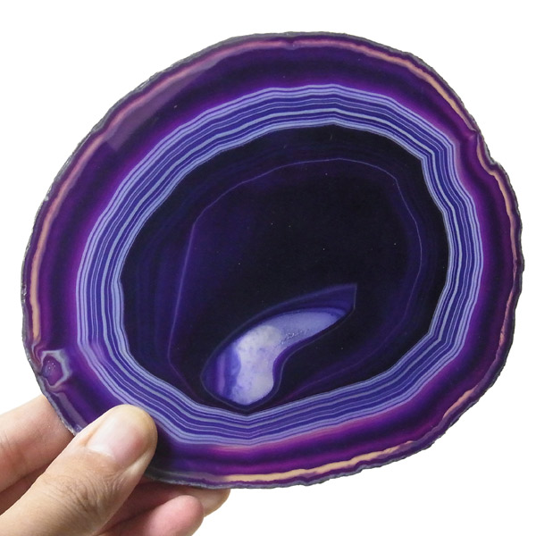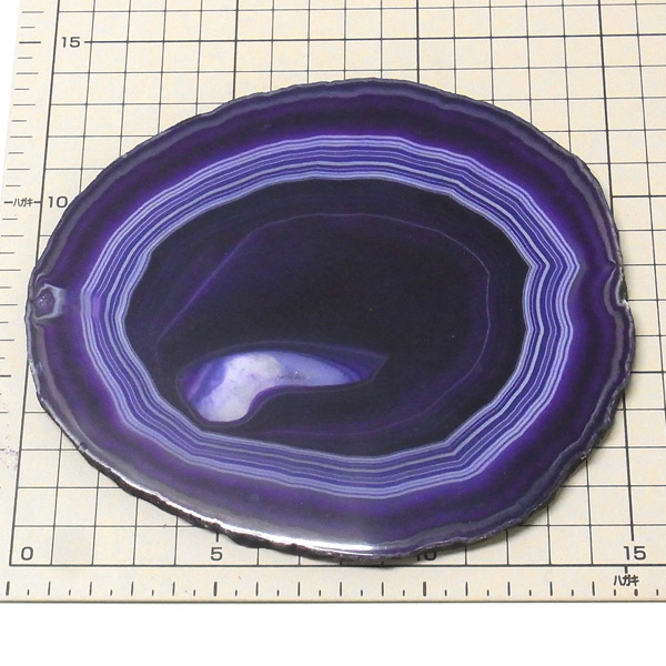ブラジル産メノウを染色し、薄くスライスした色鮮やかなメノウスライスです。カラーはパープル、大きさは特大サイズです。