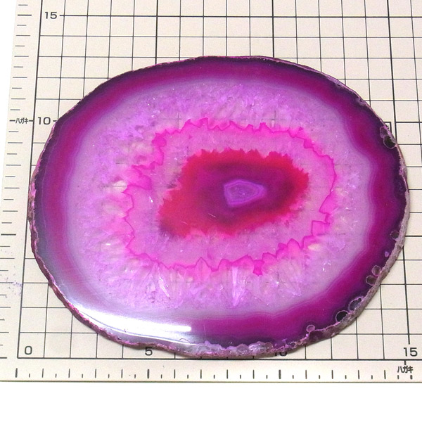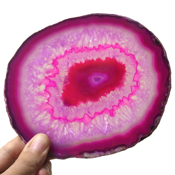 ブラジル産メノウを染色し、薄くスライスした色鮮やかなメノウスライスです。カラーはピンク、大きさは特大サイズです。