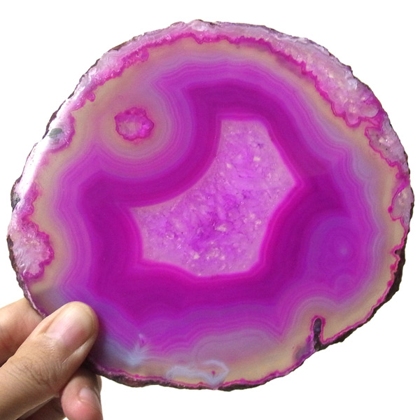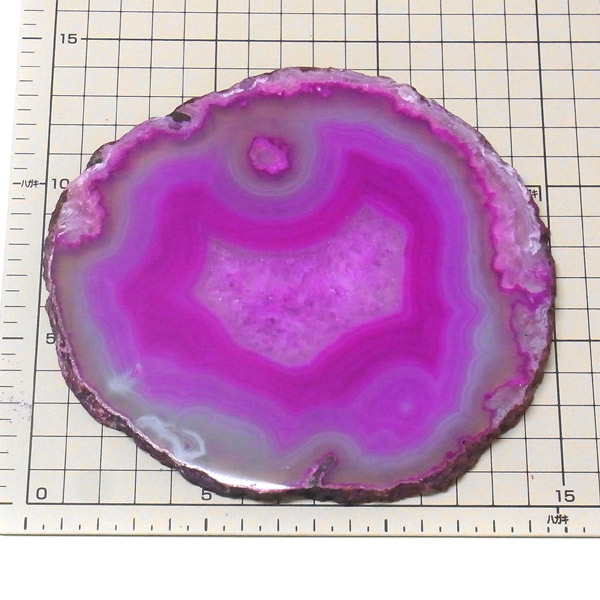 ブラジル産メノウを染色し、薄くスライスした色鮮やかなメノウスライスです。カラーはピンク、大きさは特大サイズです。