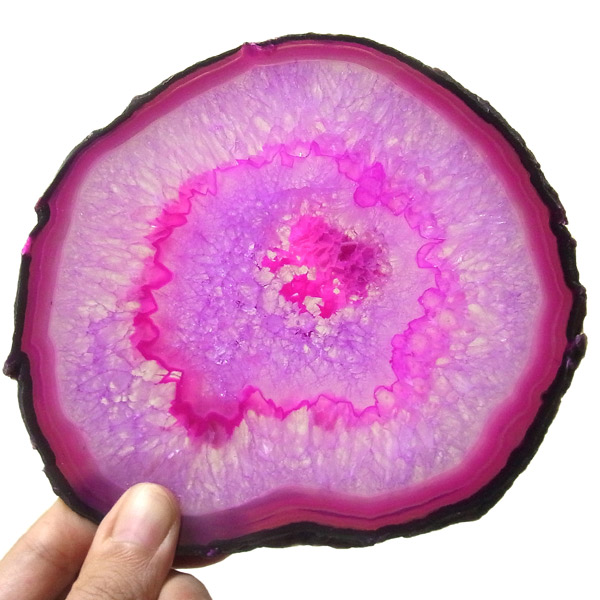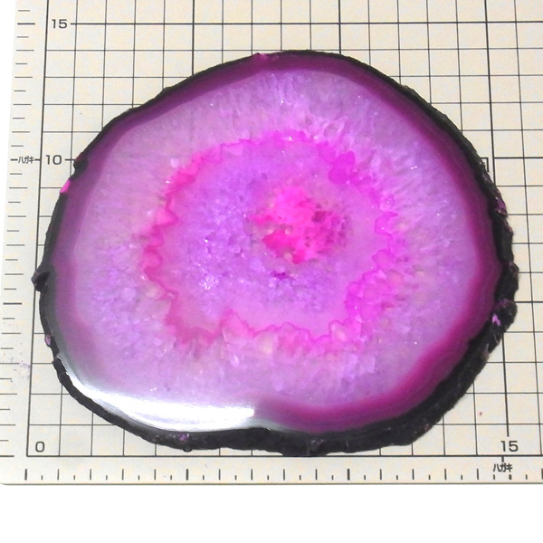 ブラジル産メノウを染色し、薄くスライスした色鮮やかなメノウスライスです。カラーはピンク、大きさは特大サイズです。