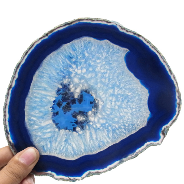 染色することにより、色の濃淡ができ、メノウの縞模様がより一層美しくなります。置物を置いたり、鉱物を置いたりのインテリアとしてや、グラスなどを置くコースターとしてもお楽しみ頂けます。