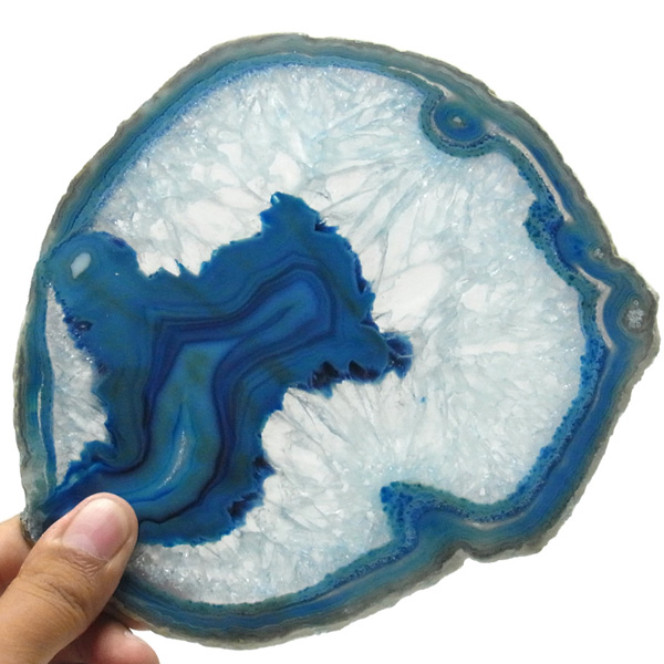 染色することにより、色の濃淡ができ、メノウの縞模様がより一層美しくなります。置物を置いたり、鉱物を置いたりのインテリアとしてや、グラスなどを置くコースターとしてもお楽しみ頂けます。