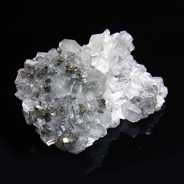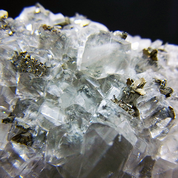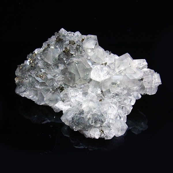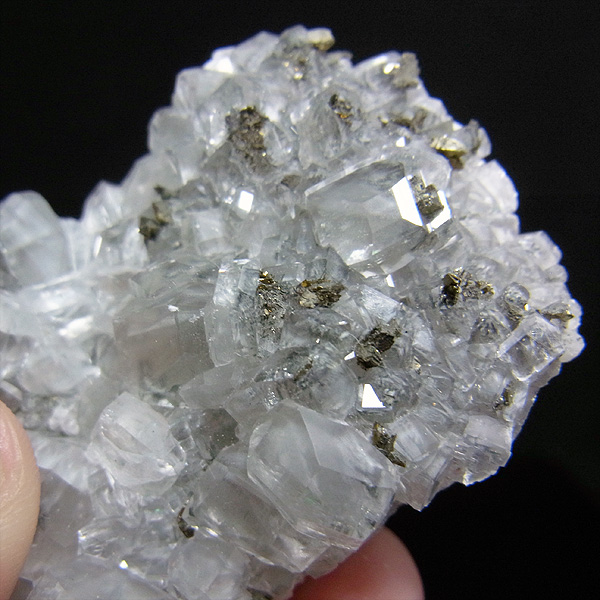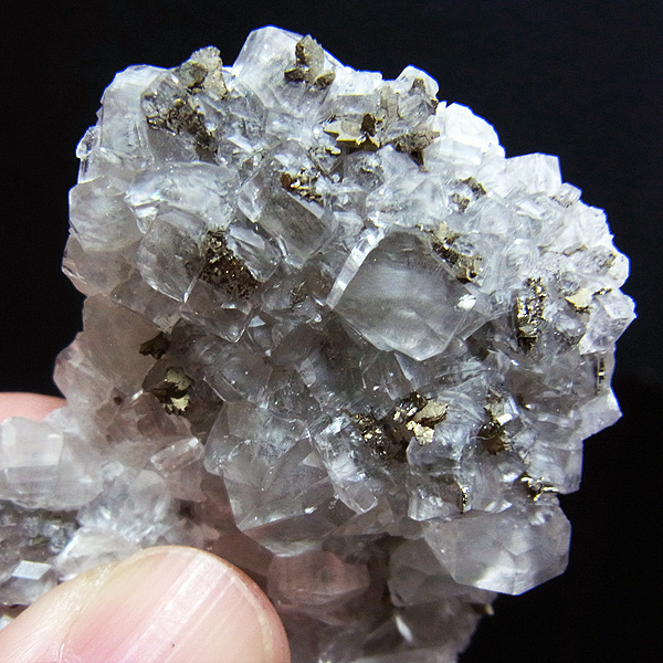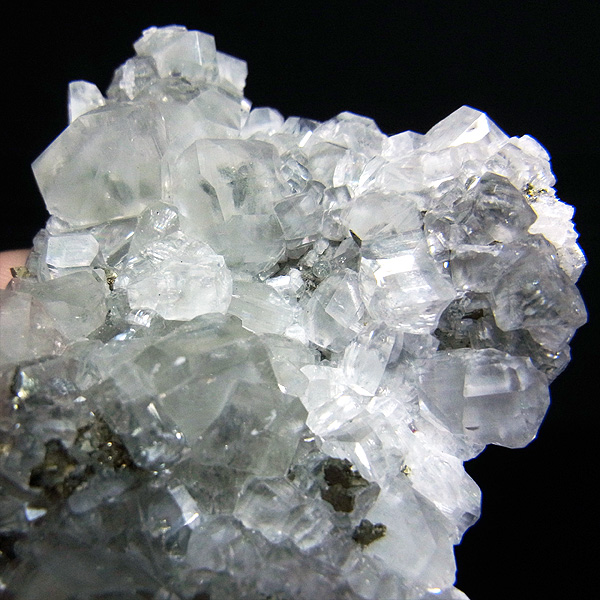 内部のマーカサイトは、ガンメタリックの色合いをしており、キラキラと輝くカルサイトの中で凛としています。