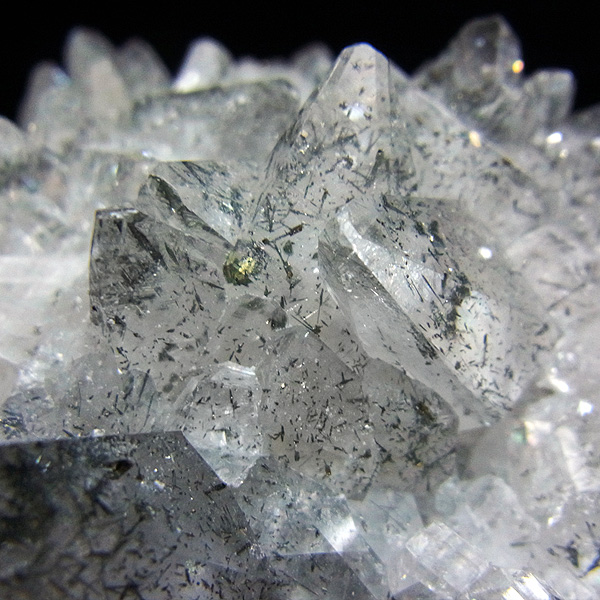 内部のマーカサイトは、ガンメタリックの色合いをしており、キラキラと輝くカルサイトの中で凛としています。