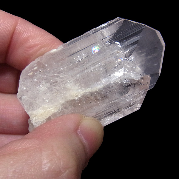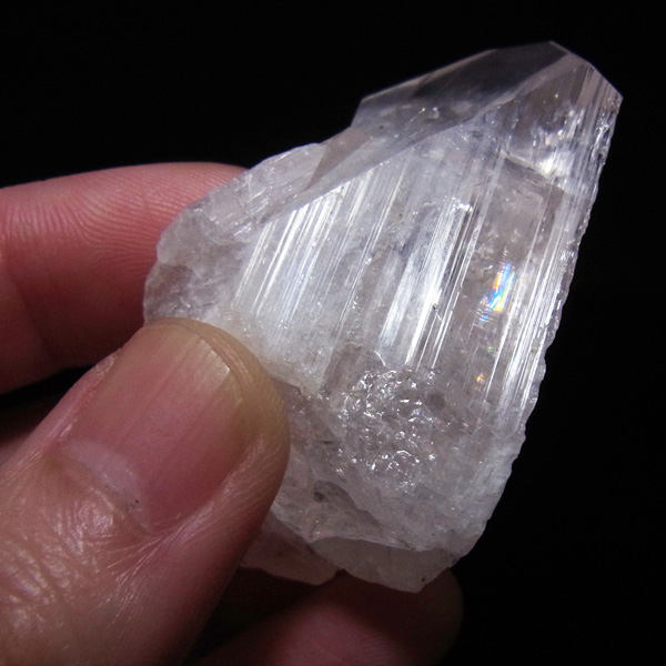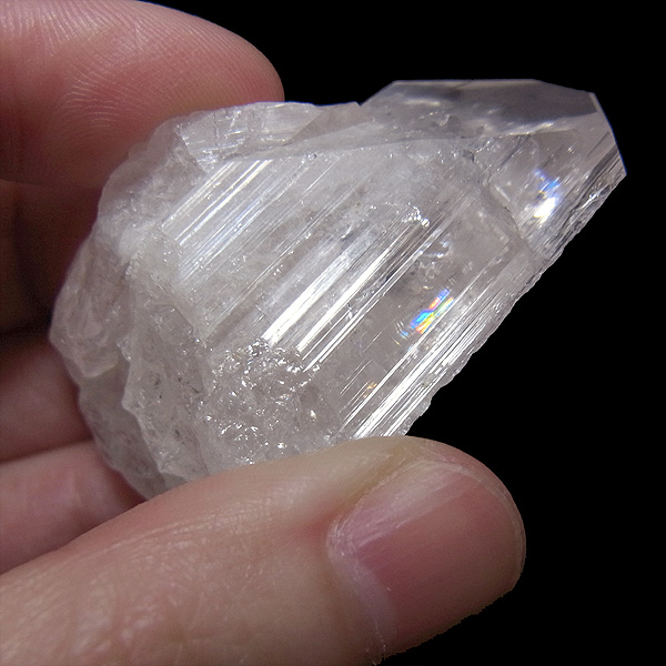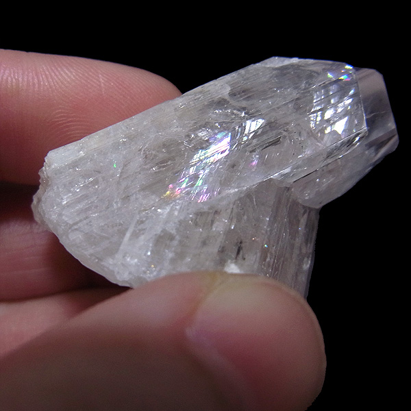 メキシコ産、ダンビュライトの原石です。 ダンビュライトはダイヤモンドの代用品として使われることもある石で、結晶の形はトパーズそっくりです。透明度と輝きは美しいの一言。レインボーも含まれ、基本的に透明ですが、僅かにほんのりとピンク色をしています。大きさも大きくお手頃な原石。おすすめの高品質な一点です。