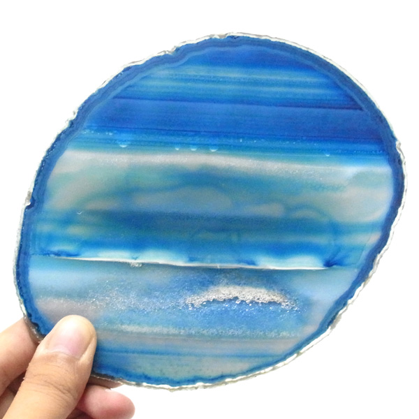 染色することにより、色の濃淡ができ、メノウの縞模様がより一層美しくなります。置物を置いたり、鉱物を置いたりのインテリアとしてや、グラスなどを置くコースターとしてもお楽しみ頂けます。