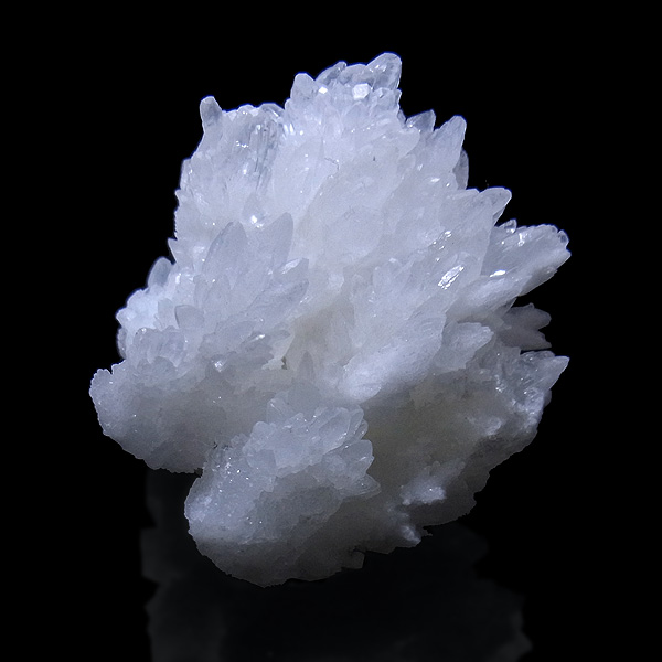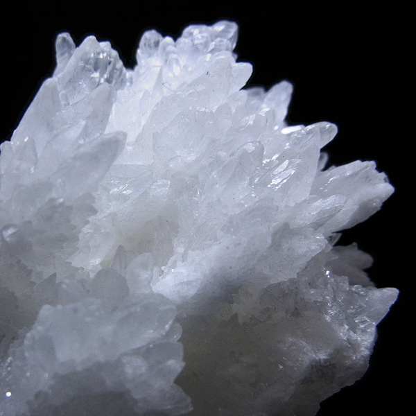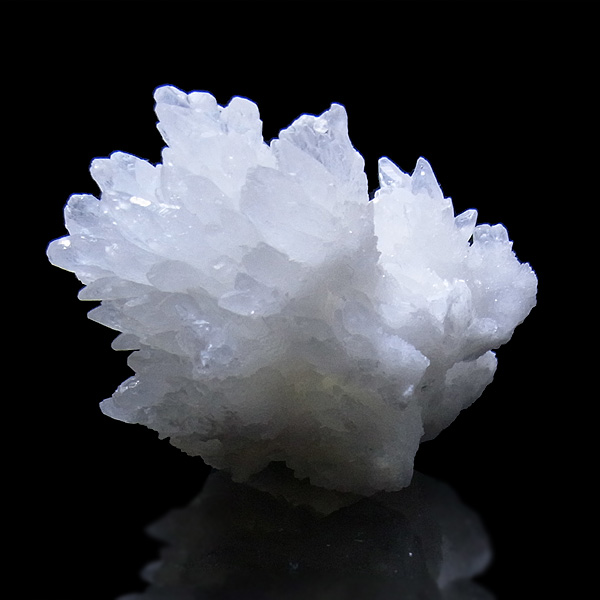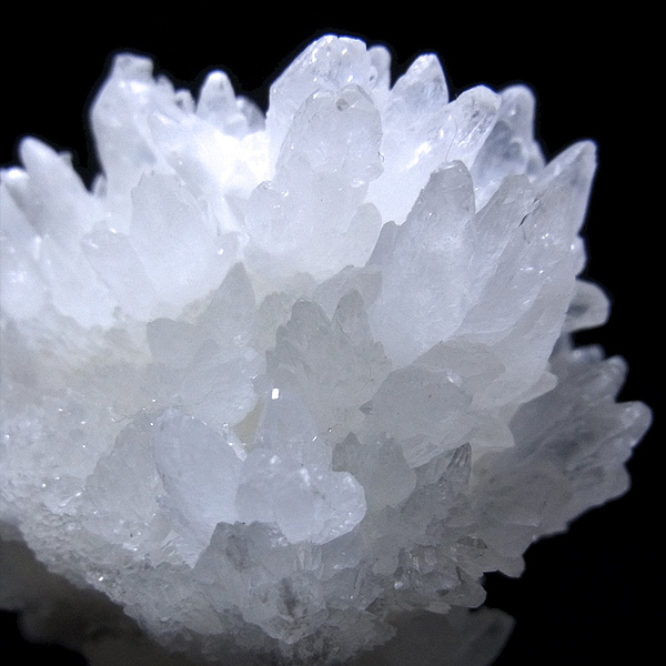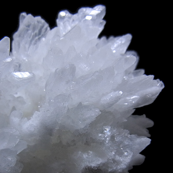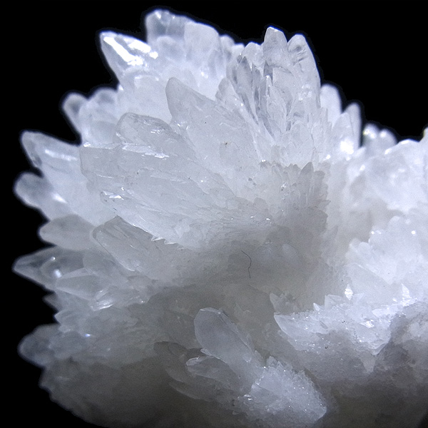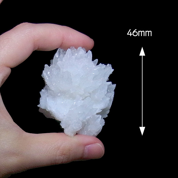 雪のように真っ白な結晶がキラキラと光を反射して、とても美しいアラゴナイト・フロスフェリです。