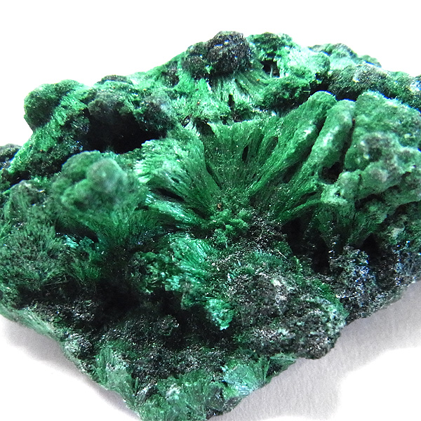 繊維状の結晶が扇状に集まった美しい一品で、ベルベットのような光沢があります。