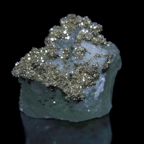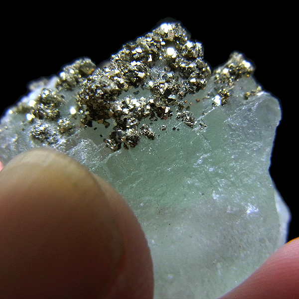 マーカサイト(白銅鉱)がグリーンフローライトの表面を覆ったモロッコの特産ミネラル。