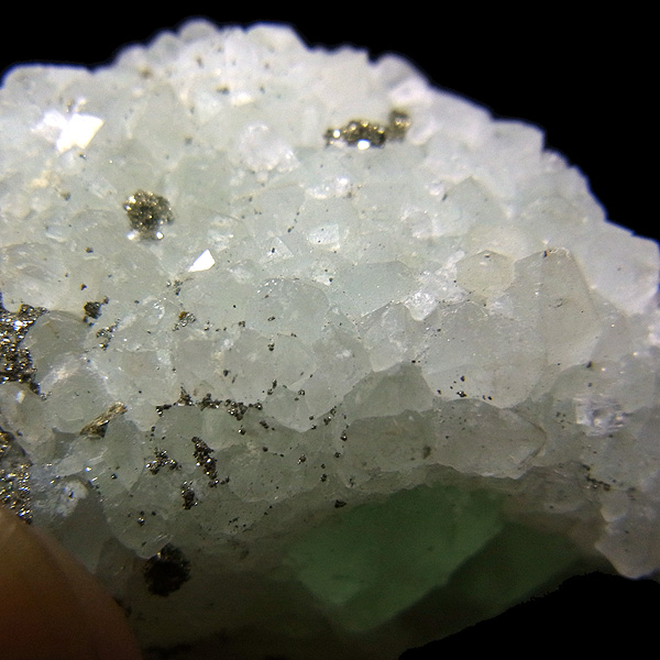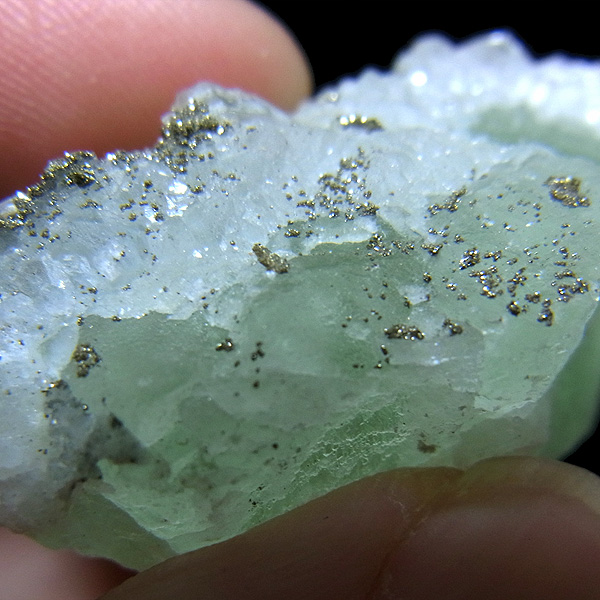 マーカサイト(白銅鉱)がグリーンフローライトの表面を覆ったモロッコの特産ミネラル。