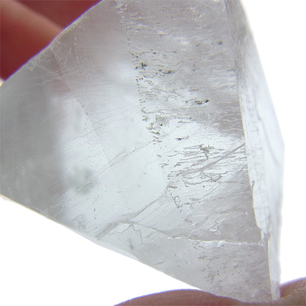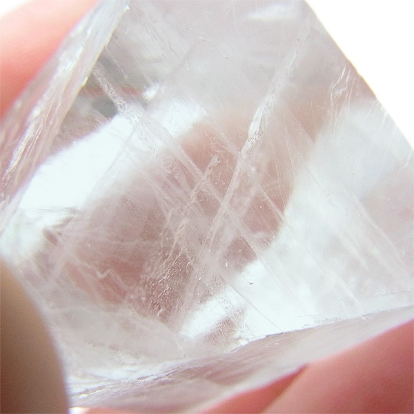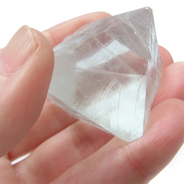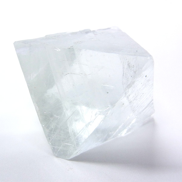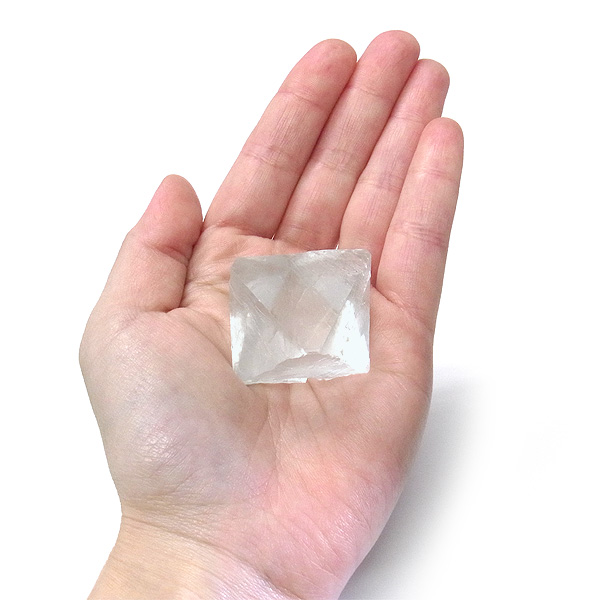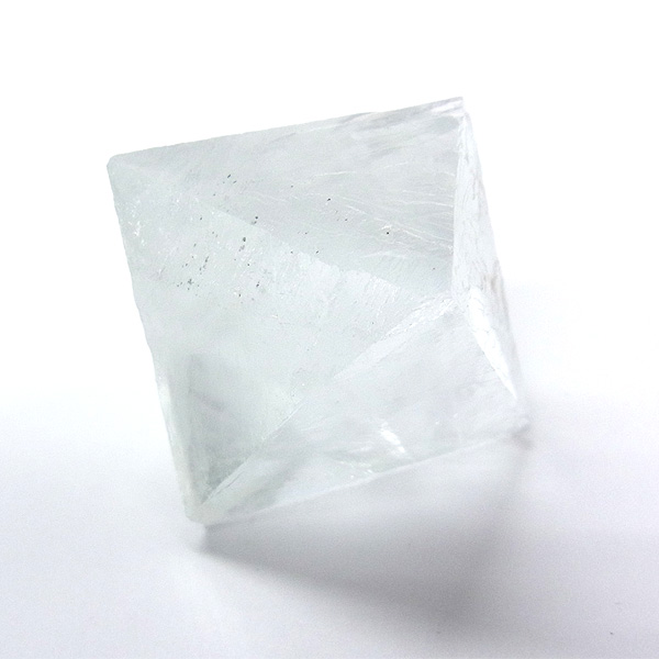 この正八面体の形は、蛍石が平面に平行に割れやすい性質を利用して加工したものです。