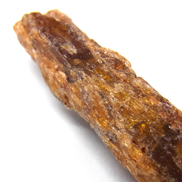 タンザニア産のカイヤナイトといえば、ブルーとクリアが混在する透明感のあるモノがよく知られており、他にはグリーンがたまに見かける程度で、それ以外の色彩は見られませんでした。しかし一方で、同じタンザニアから鉄分を多く含んだオレンジ色のカイヤナイトが産出されることは、あまり知られていません。
