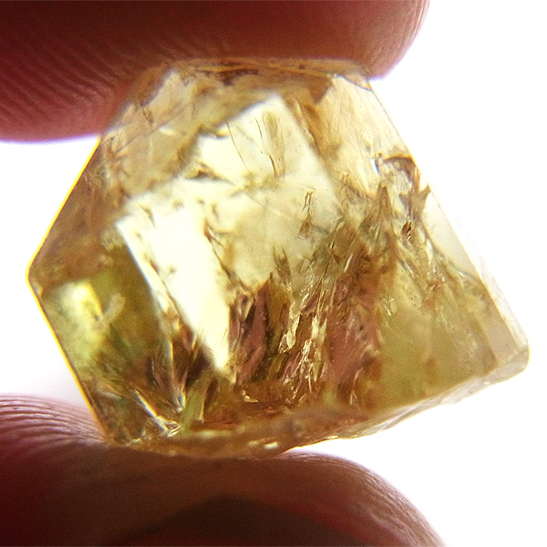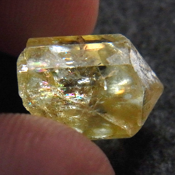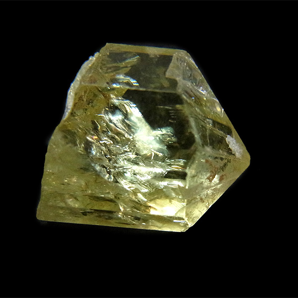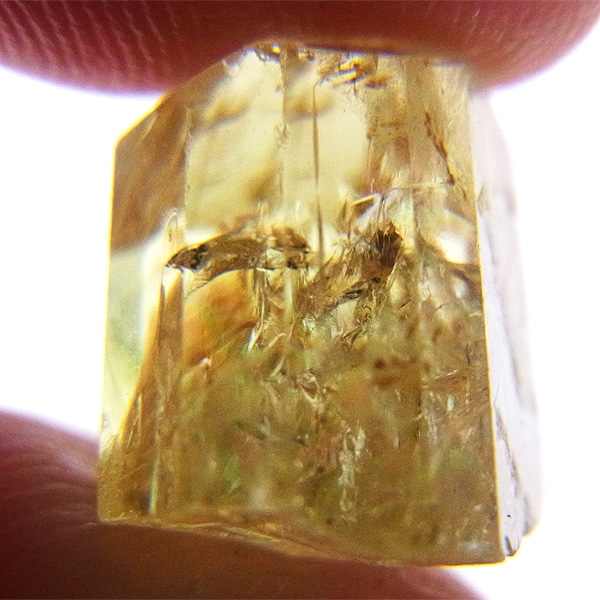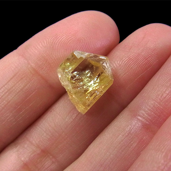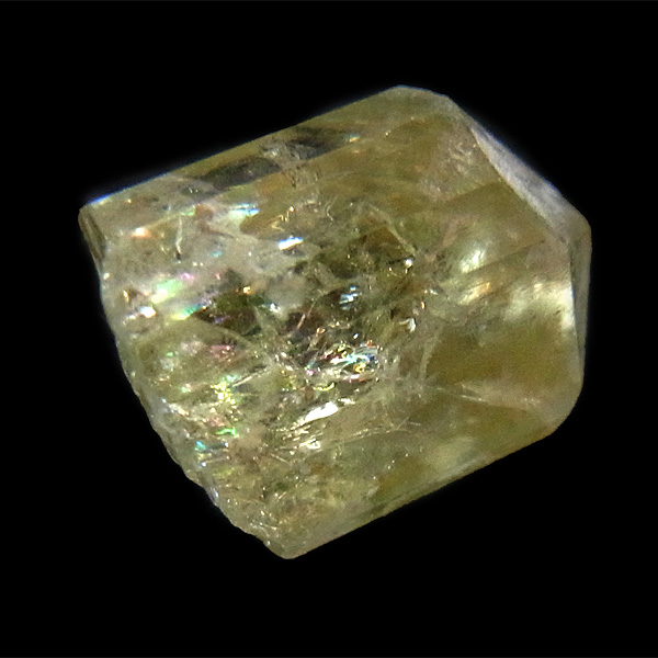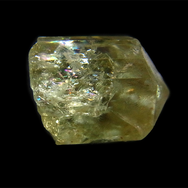 メキシコ産のイエローアパタイト原石です。加工すれば宝石になるようなきれいな原石です。結晶は透明でしっかりとしたイエローカラー、角度によってはキラりとレインボーが輝きます。とても高品質で貴重な一点です。