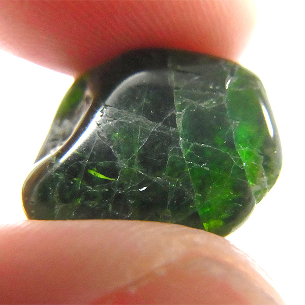 クロムダイオプサイトは、輝石で翡翠・クンツァイト・ロードナイトなどに近い鉱物です。ダイオプサイトには、白・灰・黒・褐色など様々な色がありますが、クロムの発色で鮮やかで深いグリーンのものをクロムダイオプサイドと言います。