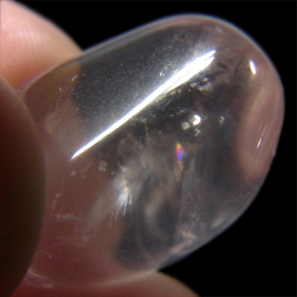 クォーツでありながらムーンストーンのような透明感があることが特徴で、カットの仕方によっては、独特のスター効果が現れます。