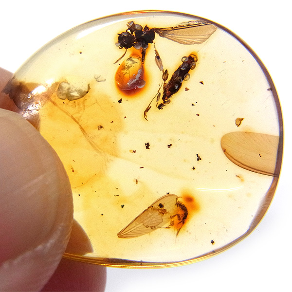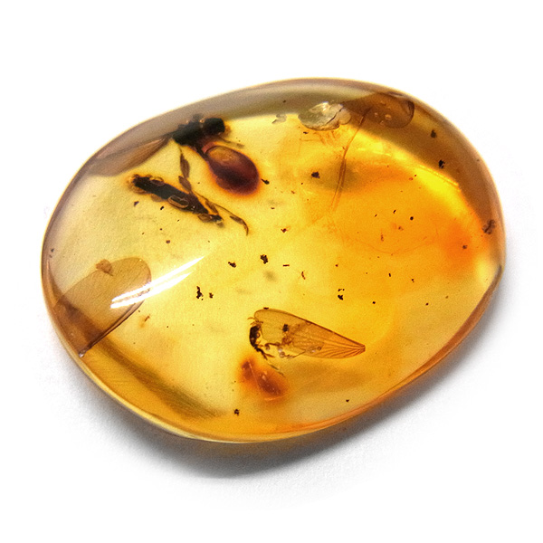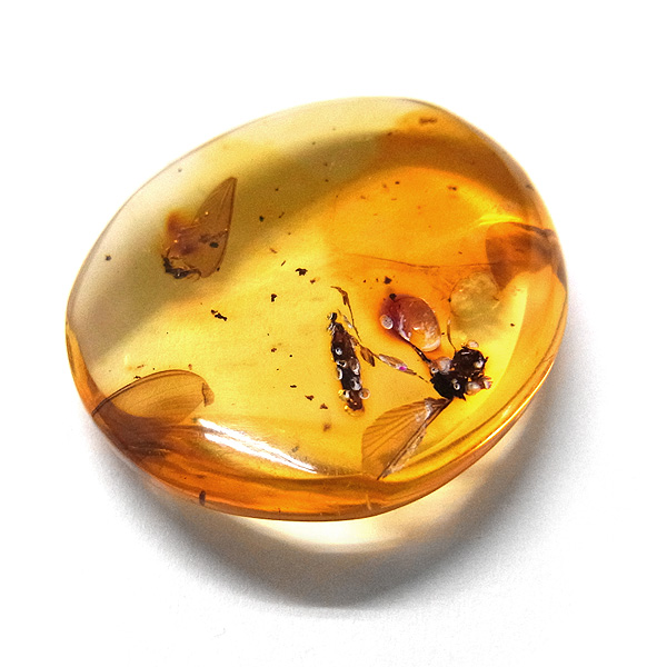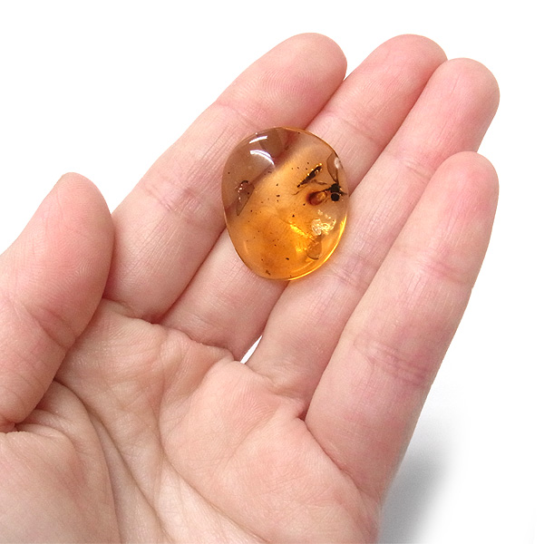 中央に1cmほどの虫が一匹存在する「虫入り琥珀」です。