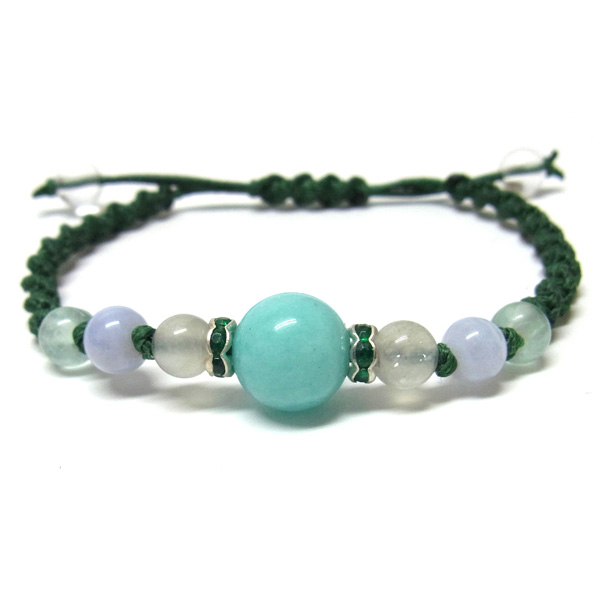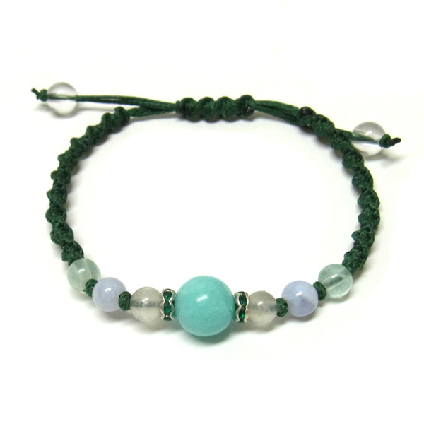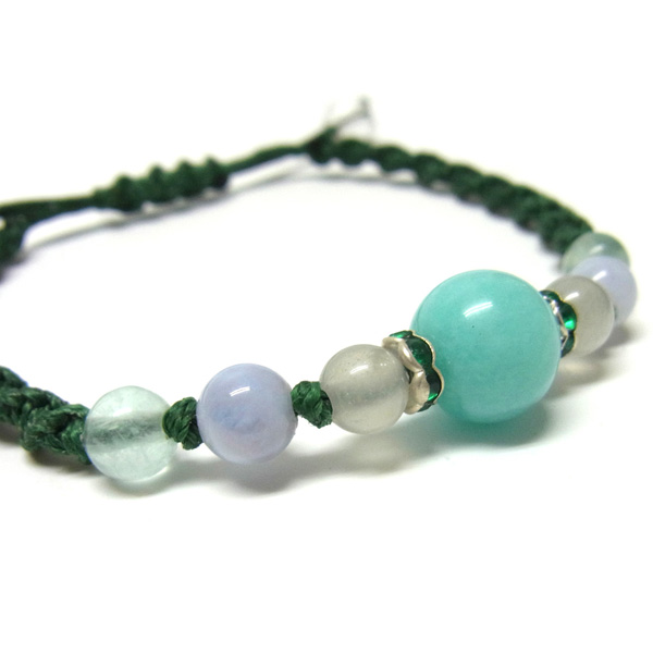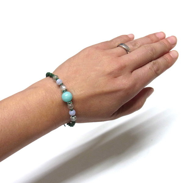 編み込みブレスレット アマゾナイト×ムーンストーン×ブルーレースアゲート×フローライト
