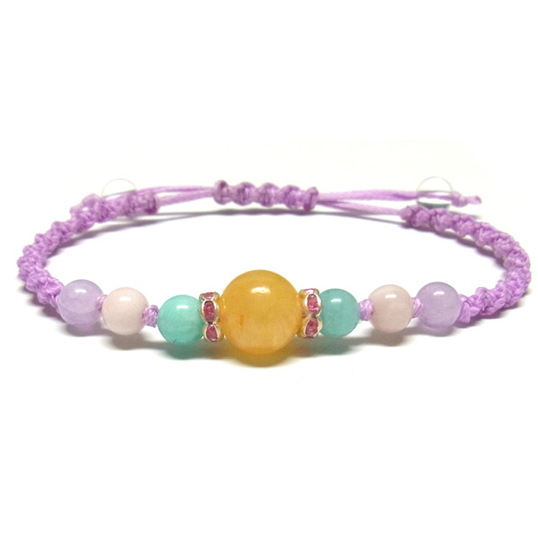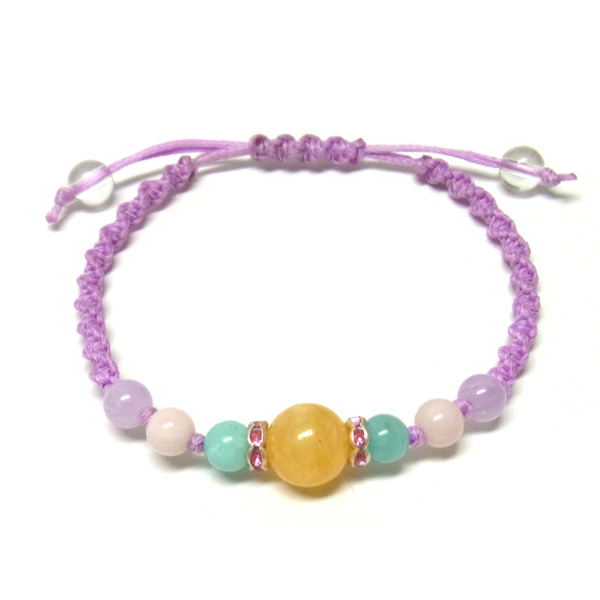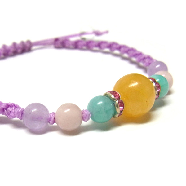 編み込みブレスレット アラゴナイト×アマゾナイト×ピンクオパール×ラベンダーアメジスト