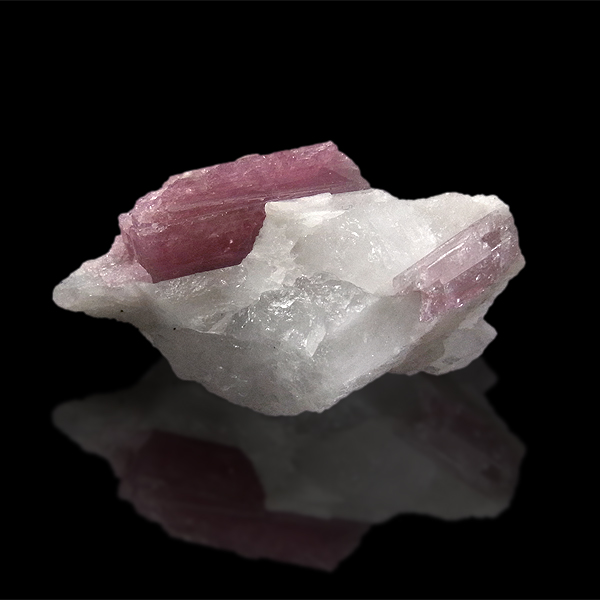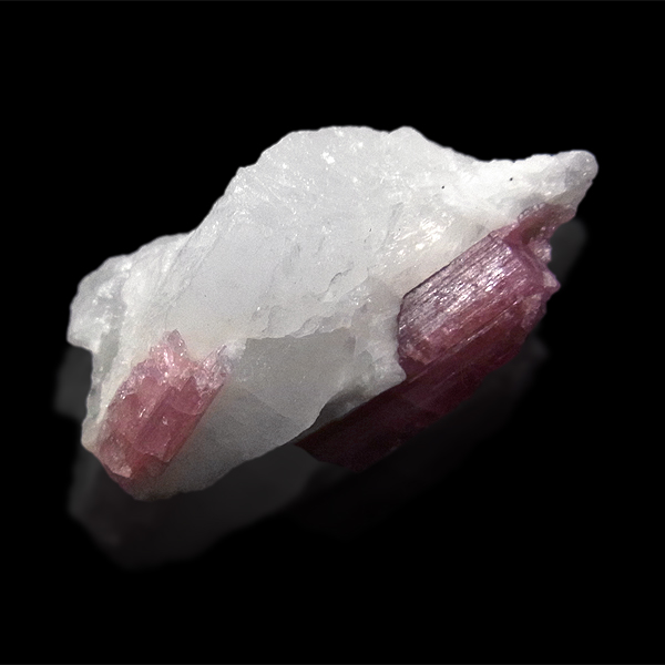 また、トルマリンは多くの鉱物と共生することでも知られていますが、中でもピンク〜赤の色を示すものが人気です。