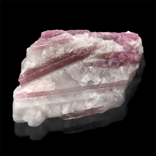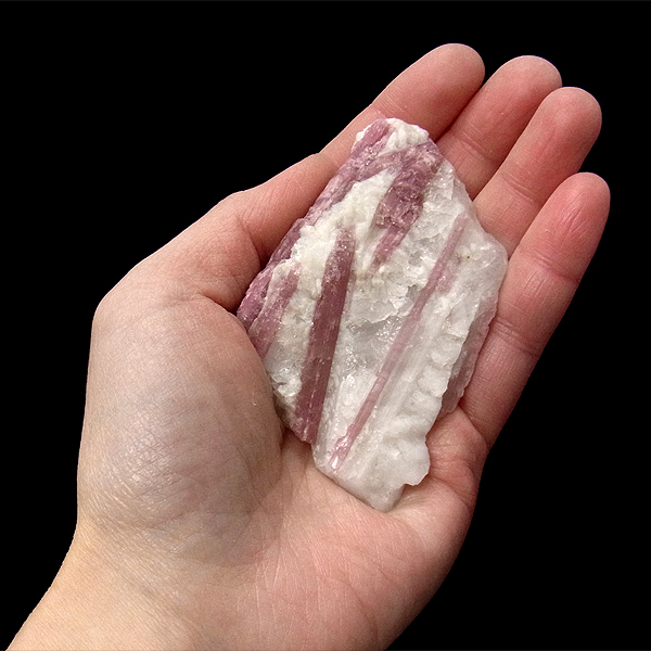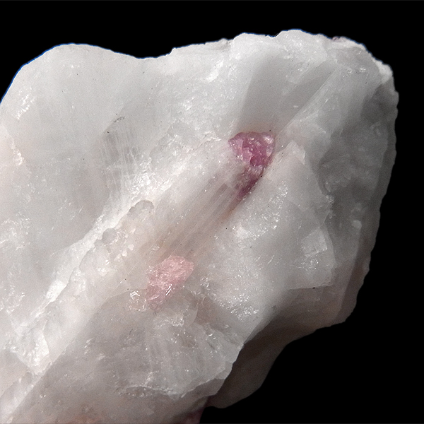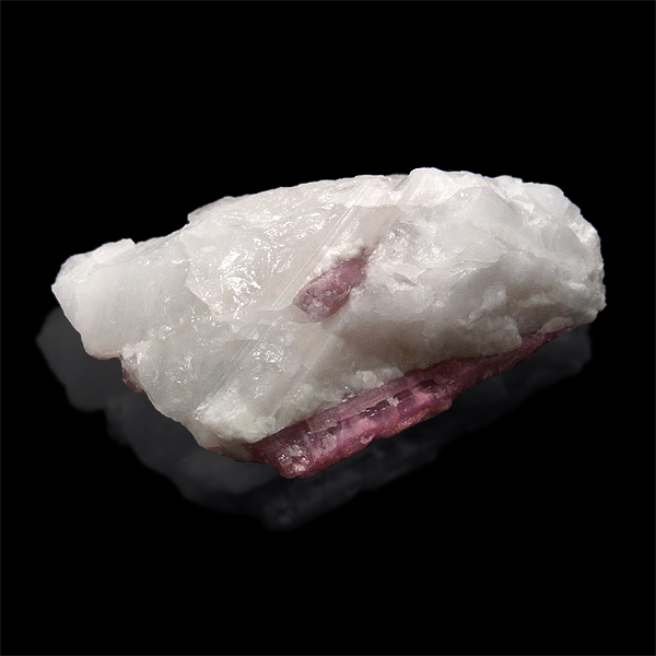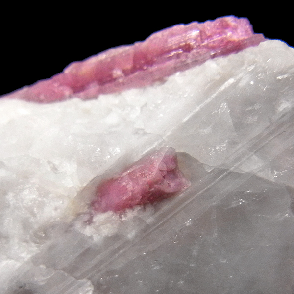 また、トルマリンは多くの鉱物と共生することでも知られていますが、中でもピンク〜赤の色を示すものが人気です。