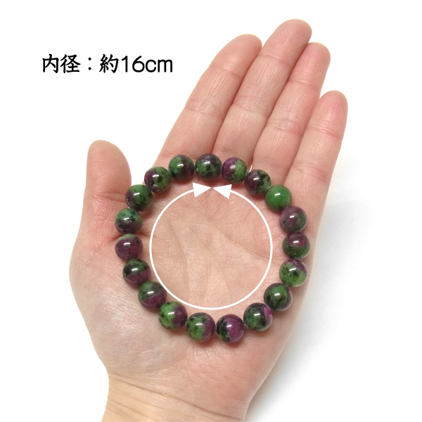ルビーインゾイサイト ブレスレット 10mm玉×19個 内周16cm