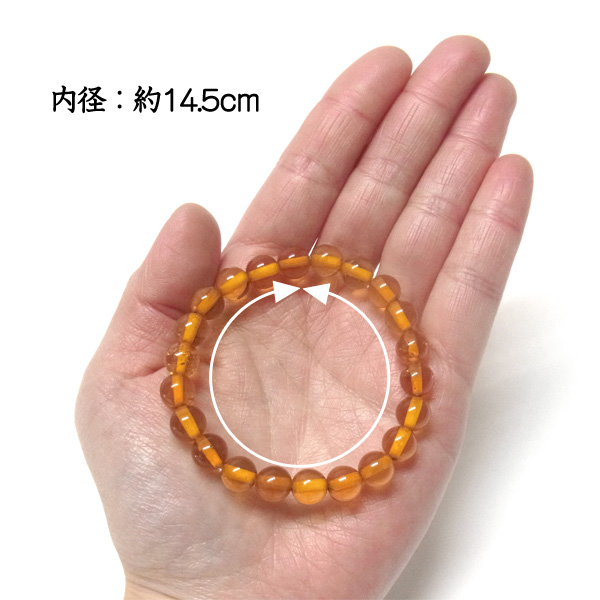 アンバー(琥珀) ブレスレット 8mm玉×22個 内周14.5cm