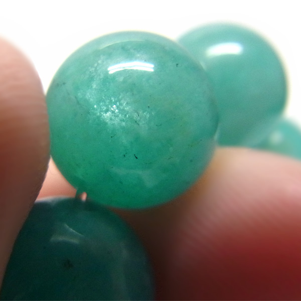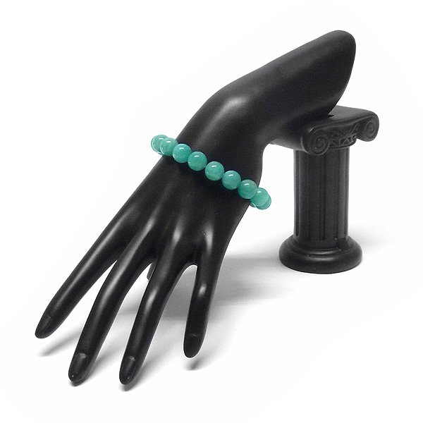 明るいエメラルドグリーンのカラーが美しい、アマゾナイトのブレスレットです。この商品は、「モザンビーク産」のアマゾナイトで、鮮やかな色合いが特徴です。モザンビーク産のアマゾナイトは、産出量が少なくそれだけで希少なのですが、その中でもこれほどにも美しいエメラルドグリーンは、なかなかお目にかかれません。