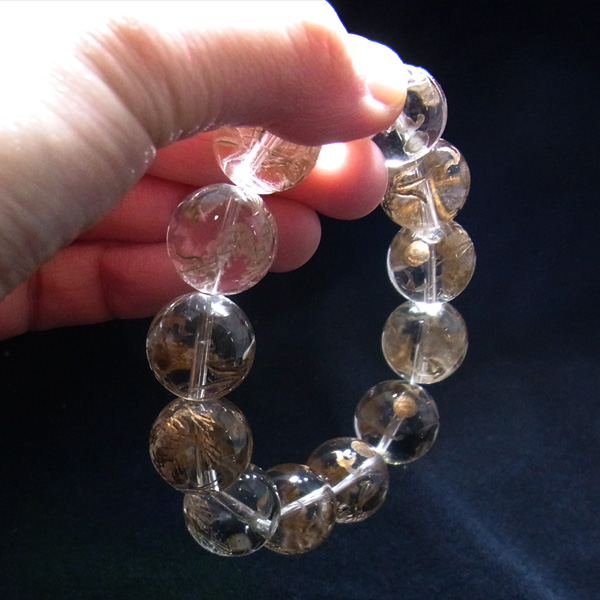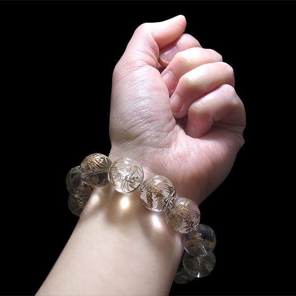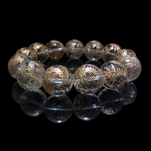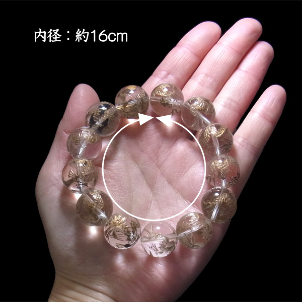 水晶 龍彫り(金) ブレスレット 16mm玉×13個 内周16cm