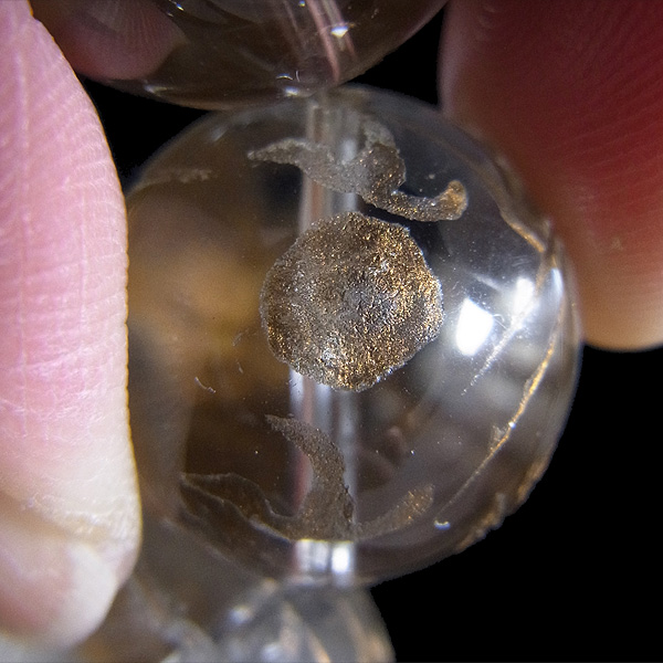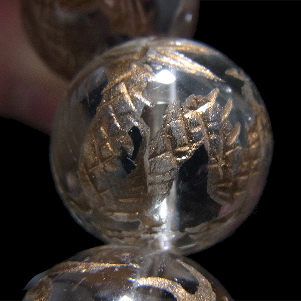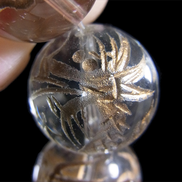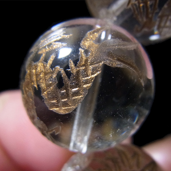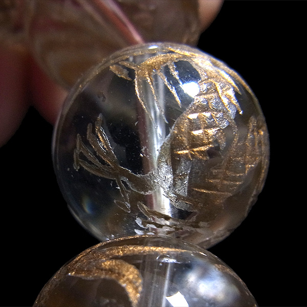 龍彫り水晶玉16mmブレスレットです。 水晶玉にレーザーで龍を彫り込んで金彩をしたビーズを使用しています。 13玉全てに龍彫り水晶玉を贅沢に使用しております。