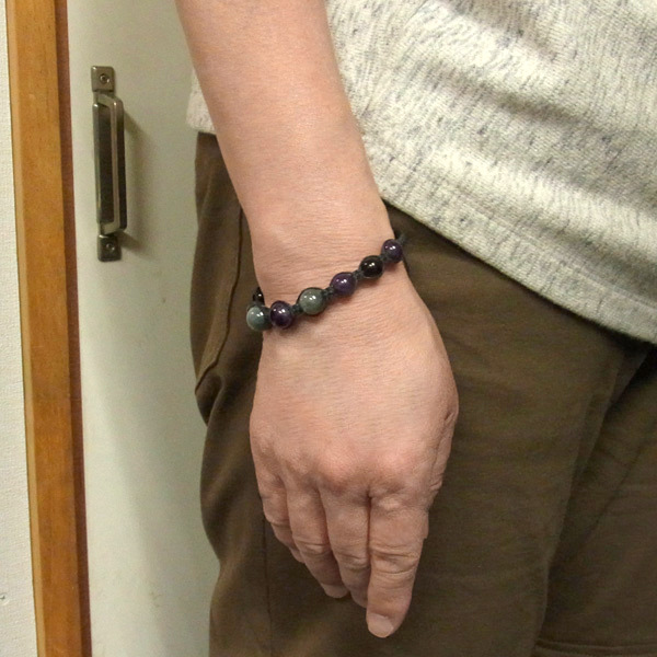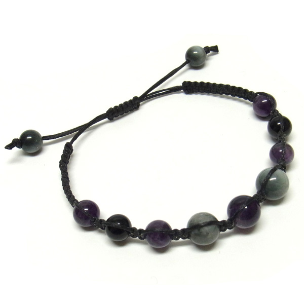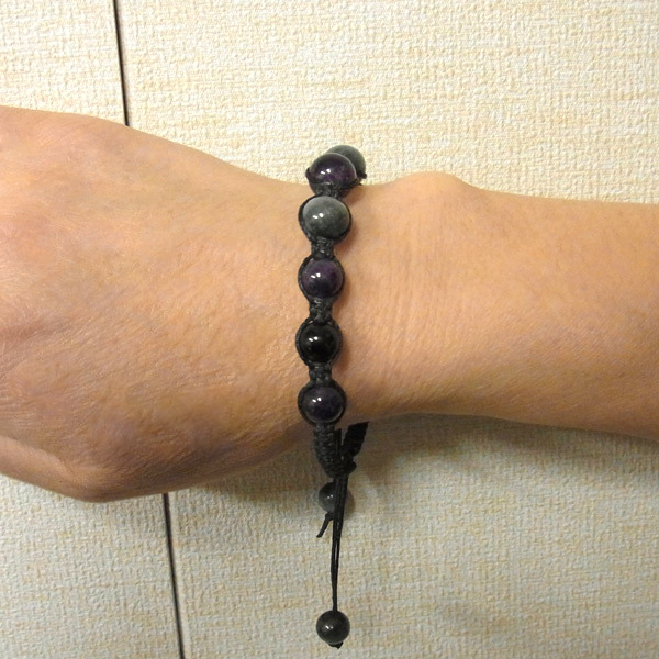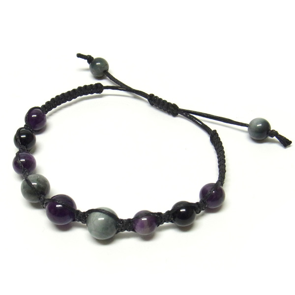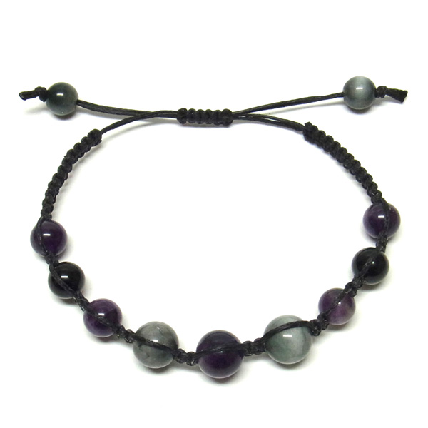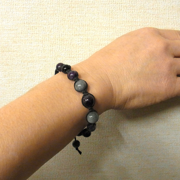 編み込みブレスレット アメジスト×イーグルアイ×オニキス