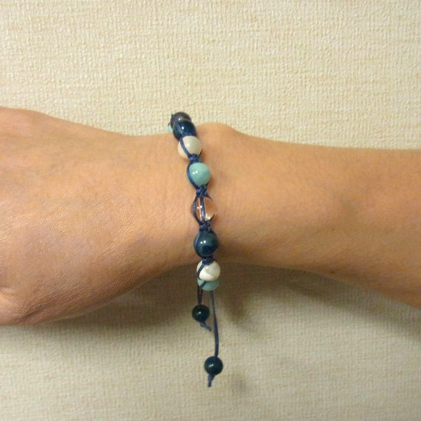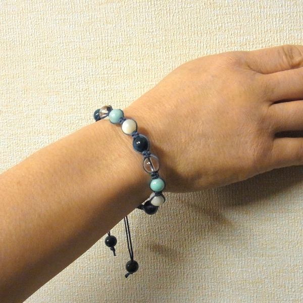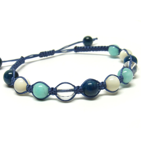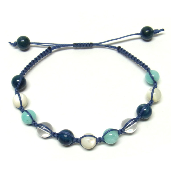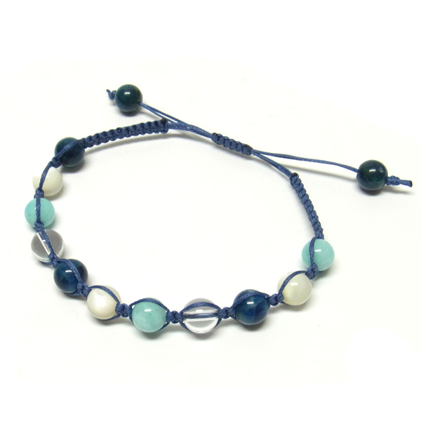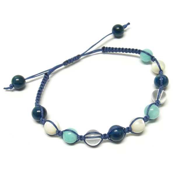 編み込みブレスレット アパタイト×マザーオブパール×アマゾナイト×水晶