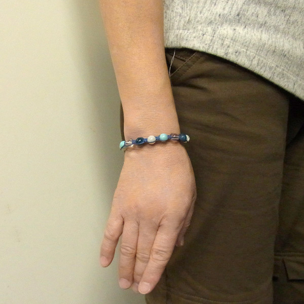 アパタイトをメインとした編み込みブレスレットです。健康、家庭運、人間成長の意味合いが込められています。当店スタッフが丁寧に編みこんでおります。サイズはアジャスターで調整可能。やさしさのあるクールなブレスレットです。