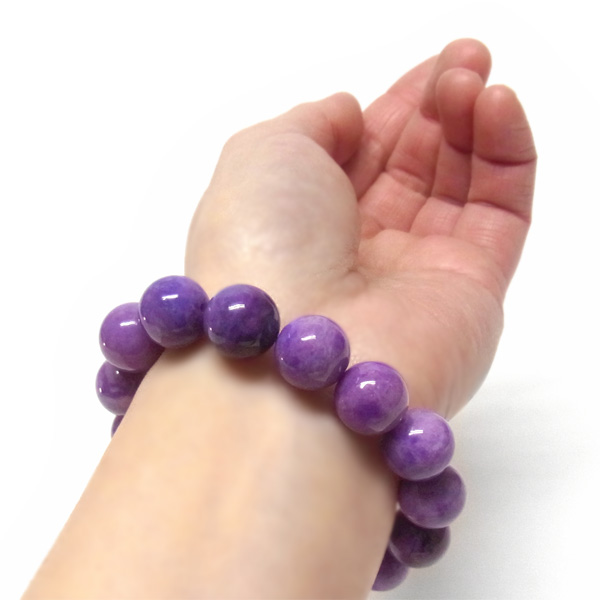 最高クラスのスギライトで作ったブレスレットです。大変希少価値の高いスギライトを13mm玉と、贅沢に使いました。また、鮮やかな色が出たビーズで揃えており、多少色の濃淡は見られますが、人工品ではないナチュラルな質感を楽しんで頂けることと思います。