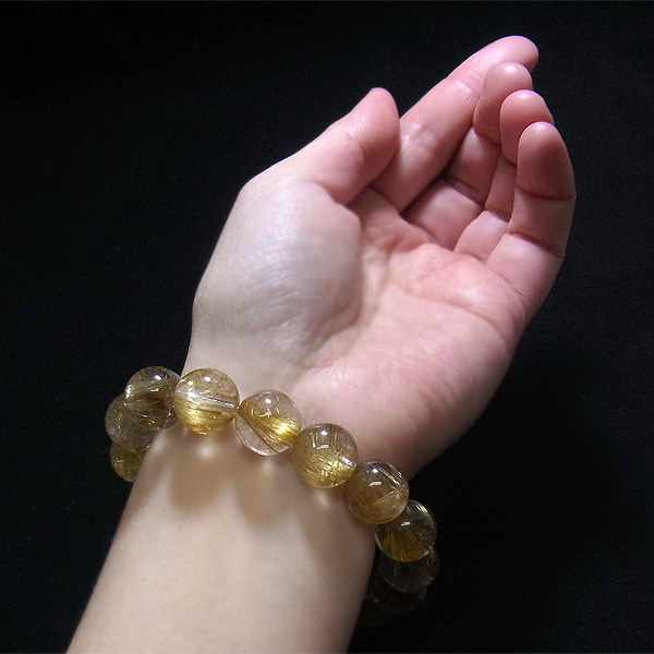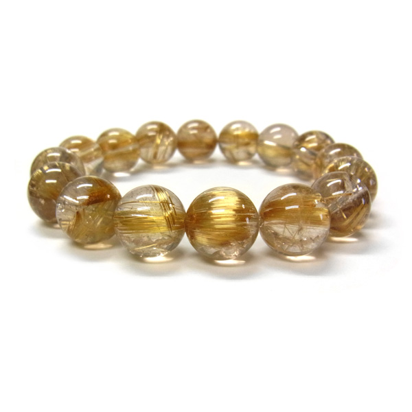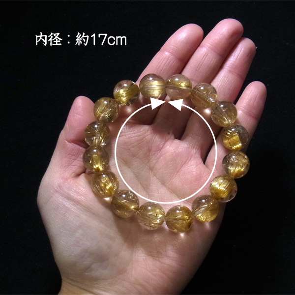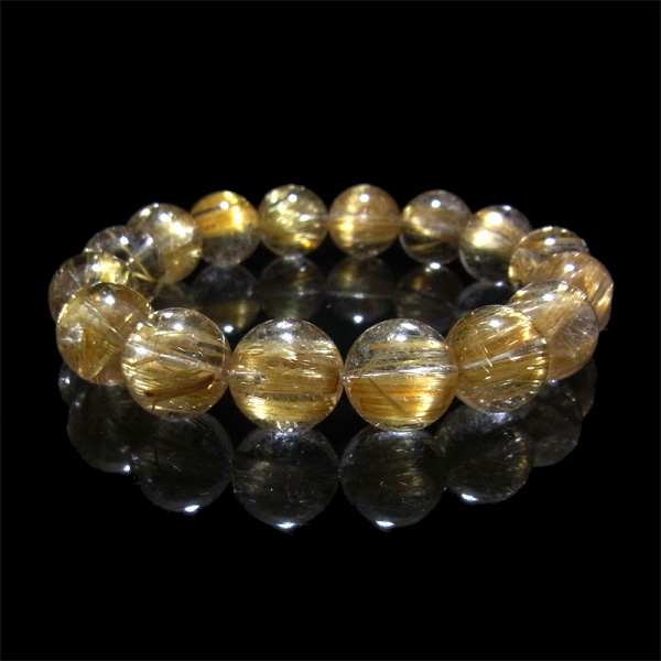 タイチンルチルクォーツ ブレスレット 13mm玉×16個 内周17cm 49g