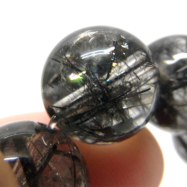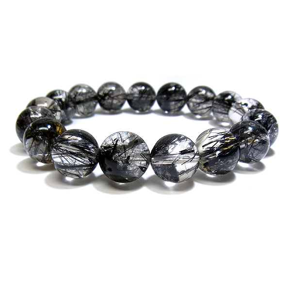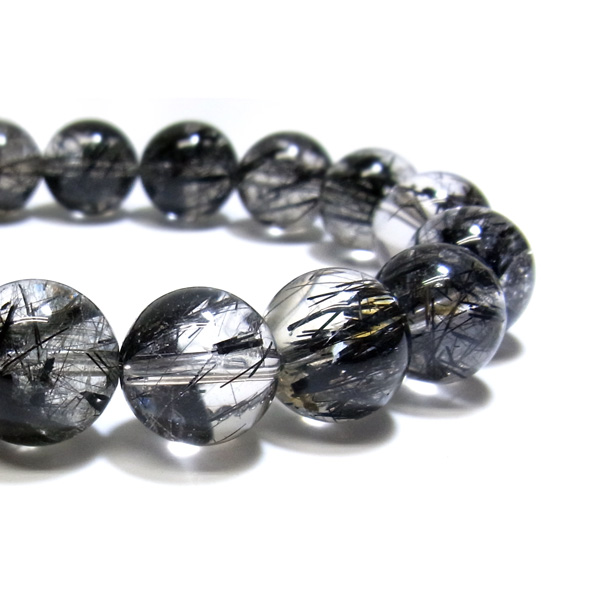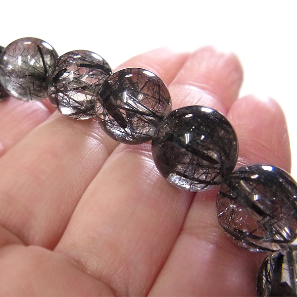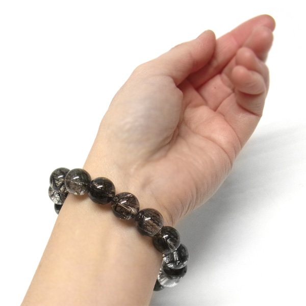 ブラックルチルクォーツ ブレスレット 12.5mm玉×17個 内周17cm 45g
