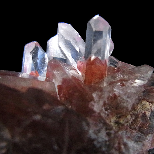 大変透明度の高い水晶クラスターの一つ一つに、赤い山がハッキリと見え、その美しさにため息が出ます。