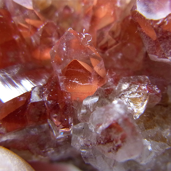 大変透明度の高い水晶クラスターの一つ一つに、赤い山がハッキリと見え、その美しさにため息が出ます。