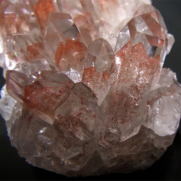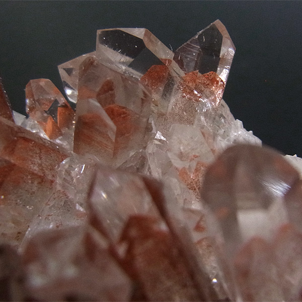 大変透明度の高い水晶クラスターの一つ一つに、赤い山がハッキリと見え、その美しさにため息が出ます。