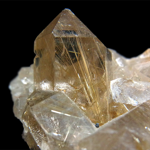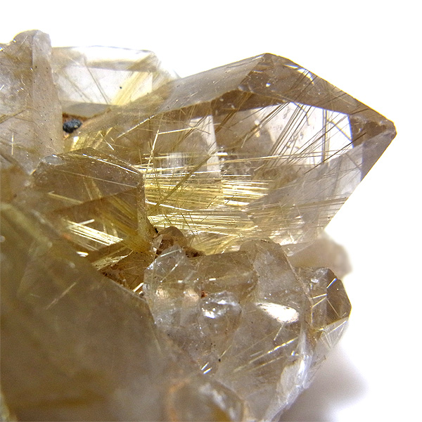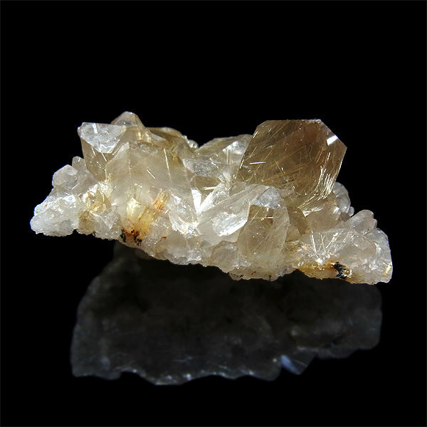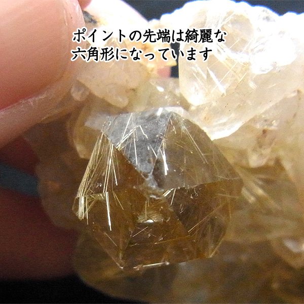 大変透明度が高く、ルチルの針がしっかりと入っています。一番大きなポイントには、下から上まで長くて綺麗な針が見られ、角度を変えるとキラキラと大変魅力的です。角度によってその表情がどんどん変わり、飽きの来ない美しいルチルクォーツです。